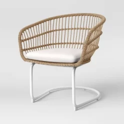Southport Outdoor Patio Chair With Metal Legs, Club Chair Natural/White – Opalhouseā¢